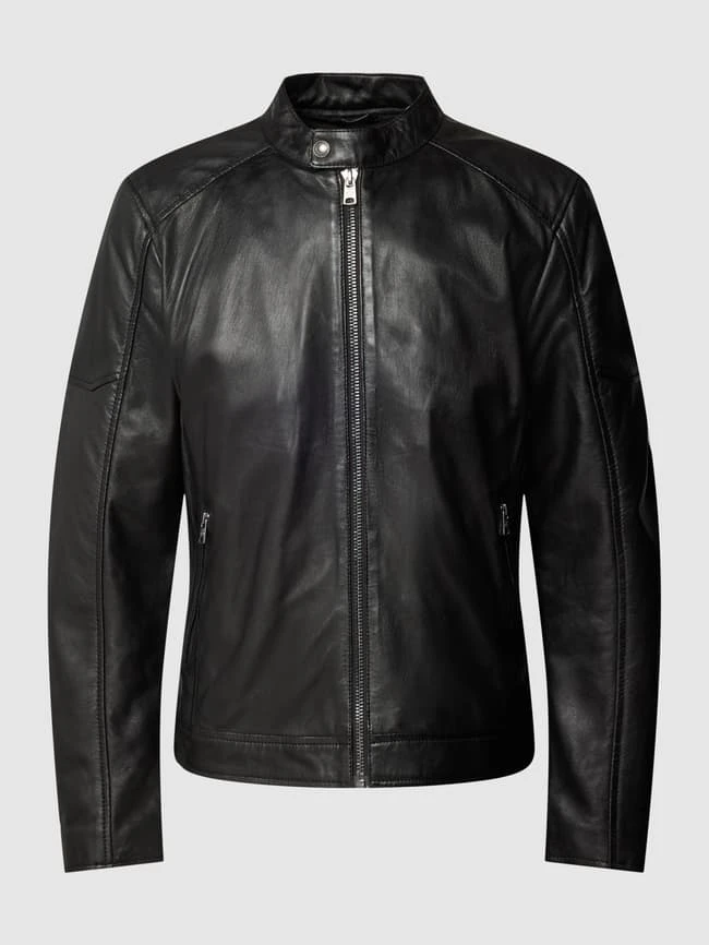 BULL & BERRY Lederjacke Mit Reißverschlusstaschen – Schwarz